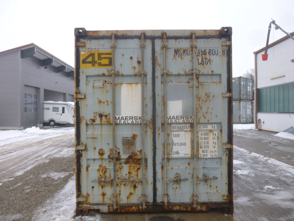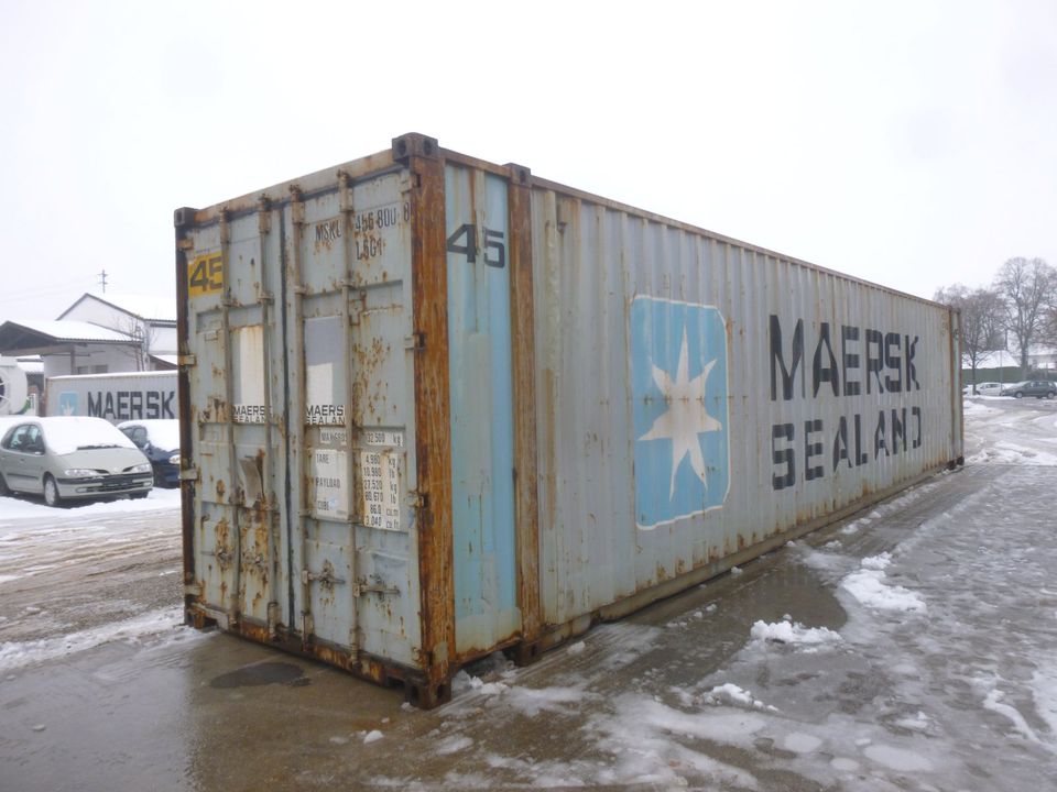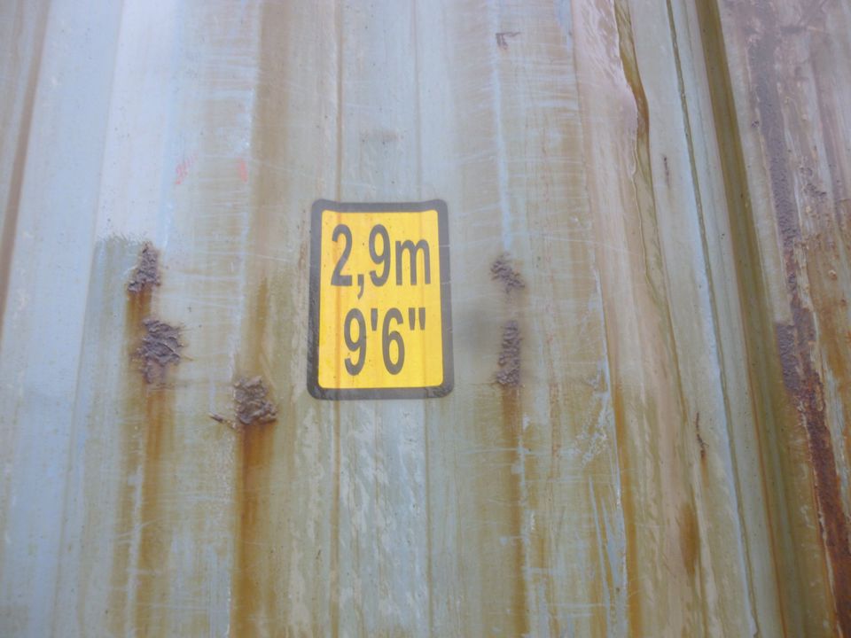 Außenmaße: 12.192 x 2.438 x 2.896 (LxBxH in mm) und folgende Innenmaße: 12.032 x 2.352 x 2.698 (LxBxH in mm). Die Türöffnung hat eine Abmessung von 2.340 x 2.585 (BxH in mm). Volumen 76,4m³