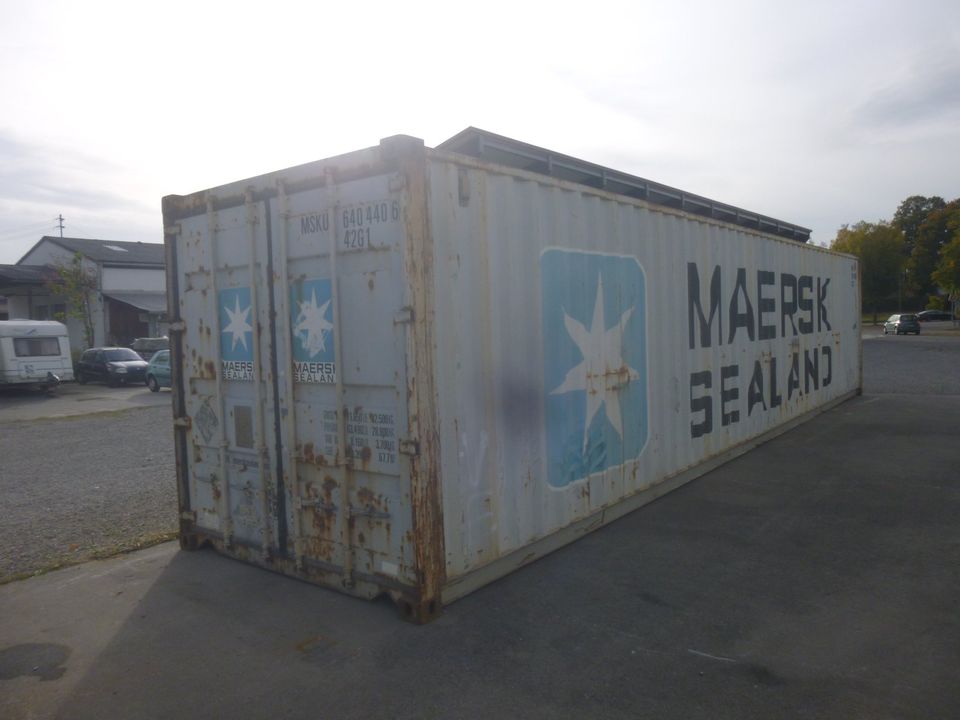 Außenmaße: 12.192 x 2.438 x 2.591 (LxBxH in mm) und folgende Innenmaße: 12.032 x 2.350 x 2.393 (LxBxH in mm). Die Türöffnung hat eine Abmessung von 2.343 x 2.280 (BxH in mm)